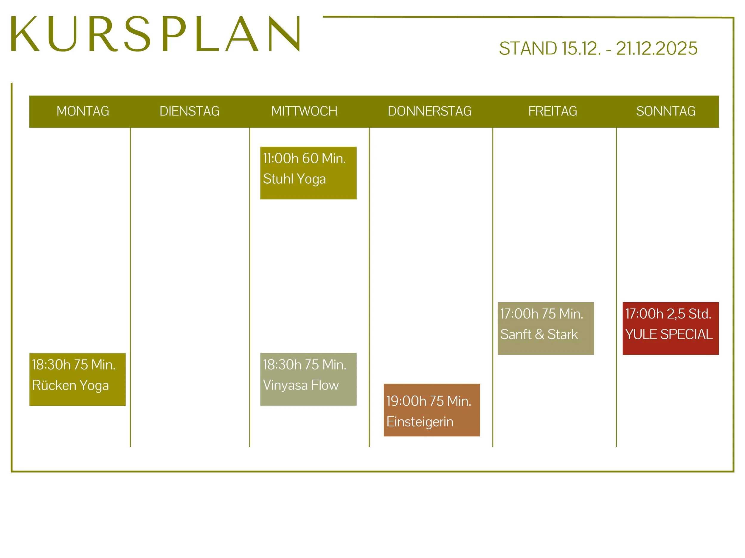 Ich aktualisiere den Plan regelmäßig. Falls also ein neuer Kurs dazukommt oder ein freier Tag ansteht, kannst du es hier immer direkt herausfinden.
