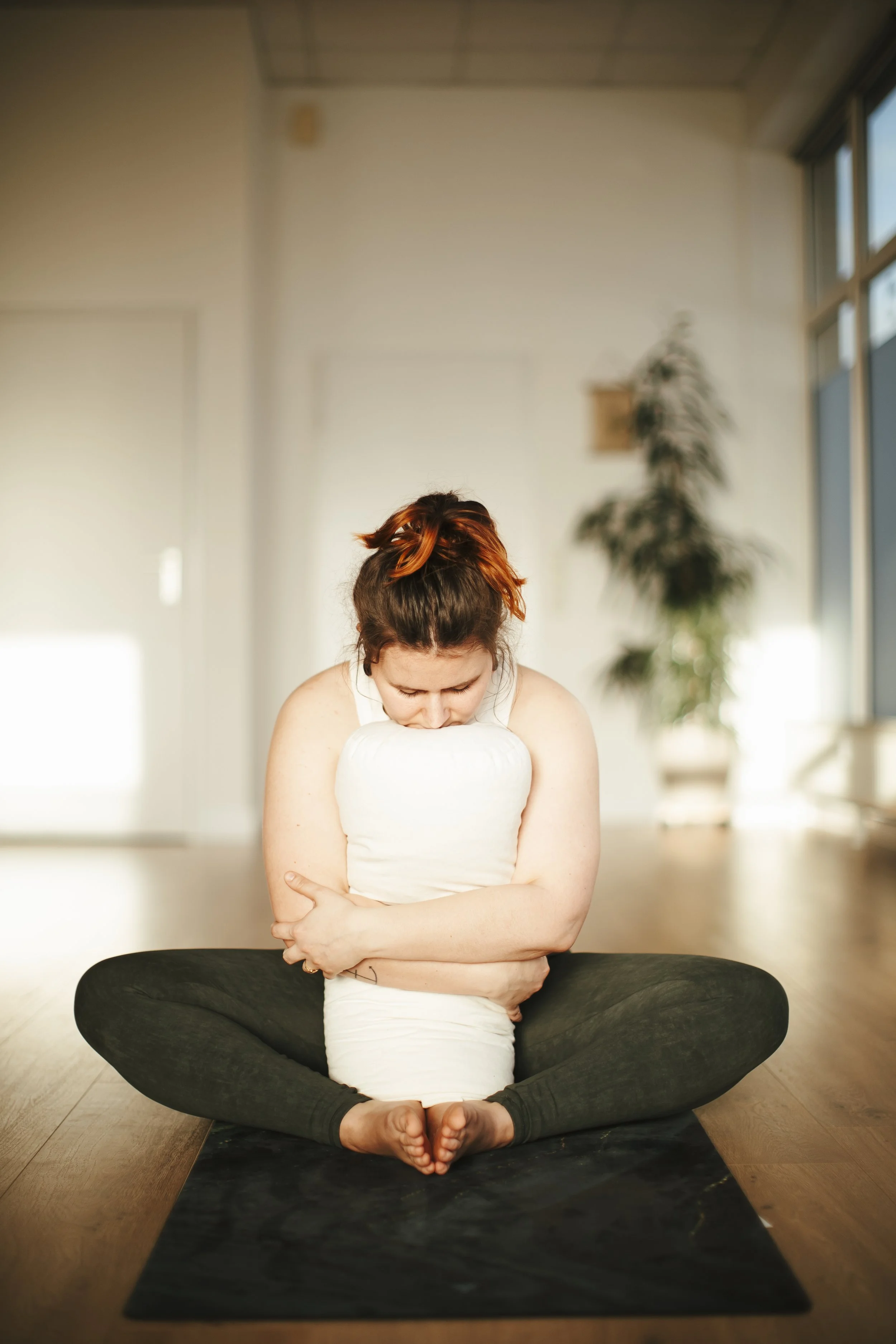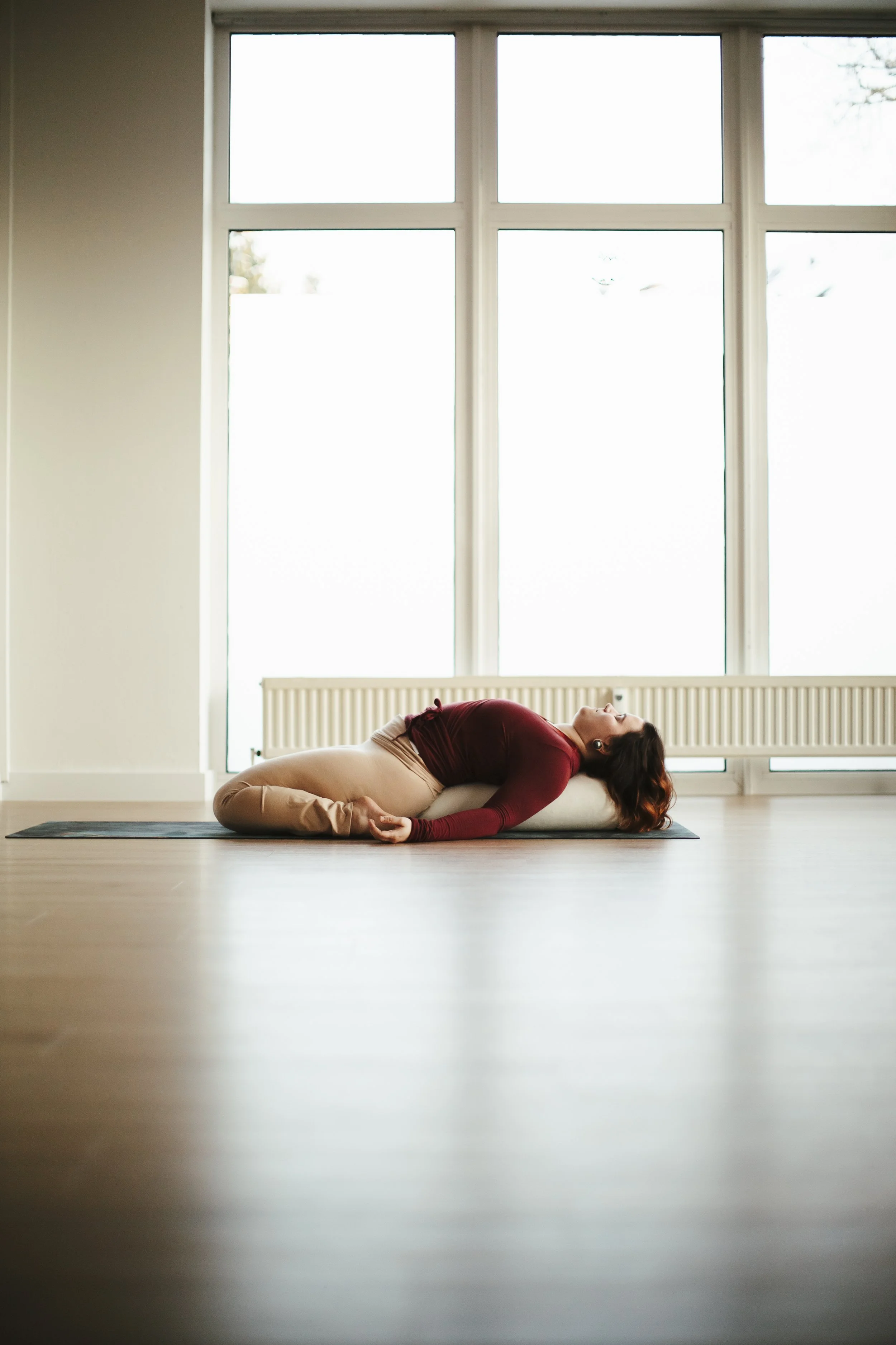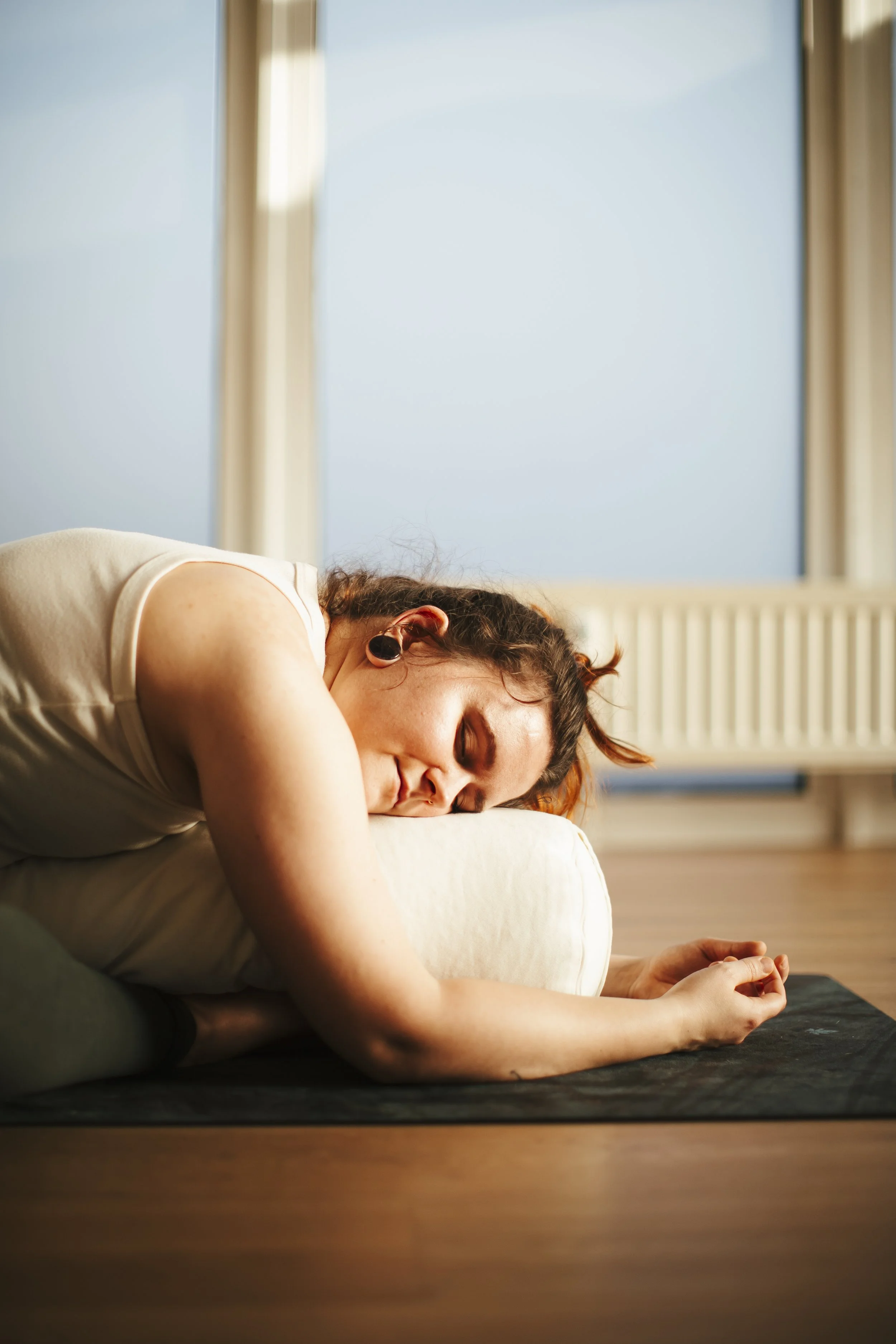 Nun folgt das Cool-down, in dem wir mit Bolstern, Blöcken und Gurten typische Yoga Haltungen variieren und besonders zugänglich machen. In jedem Kurs wirst Du das Bolster nutzen und in sanfte Dehnungen gehen, ohne Deine Muskeln oder Sehnen zu stressen. Hier darfst Du Dich vollständig entspannen. Du musst nichts Anstrengendes mehr tun, niemand hat irgendeine Erwartung, Du darfst einfach sein und die tiefe Stille genießen. Eigentlich ist dieser Teil, das Herz dieses Kurses. Dein Kopf darf loslassen, Deine Muskeln werden sanft gestreckt und Dein Atem fließt tief und ruhig. Bei der 8–10-minütigen Endentspannung begleite ich Dich mit einer Meditationsreise, die Dich noch tiefer entschleunigt.