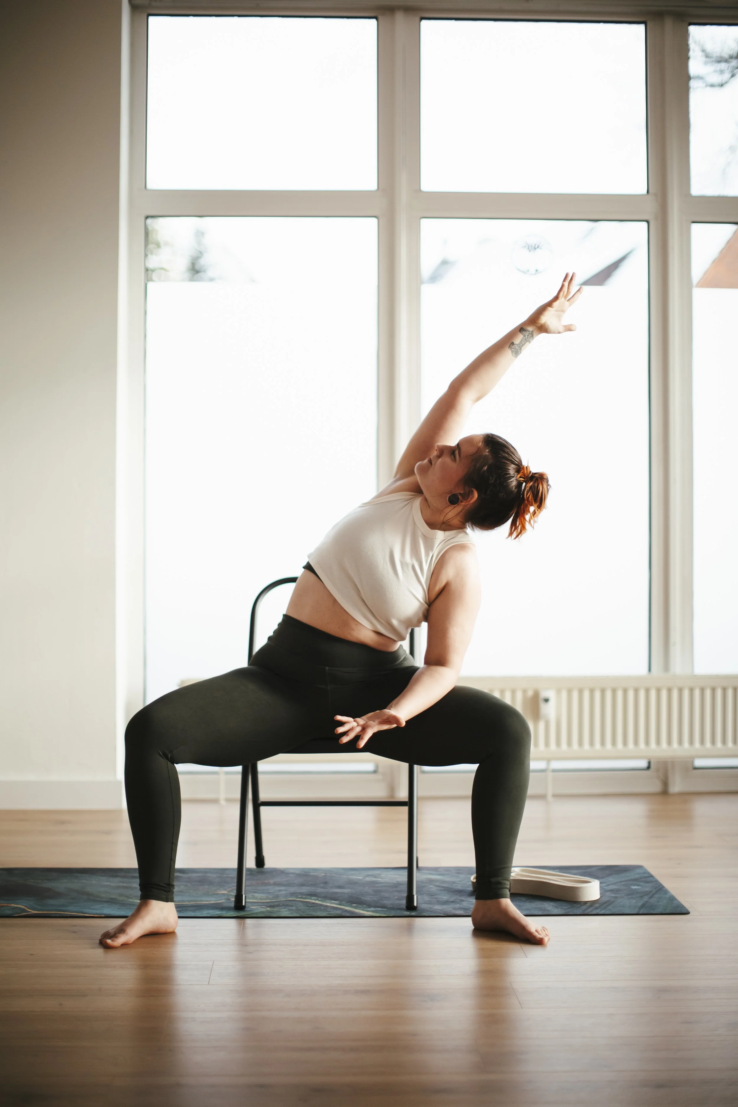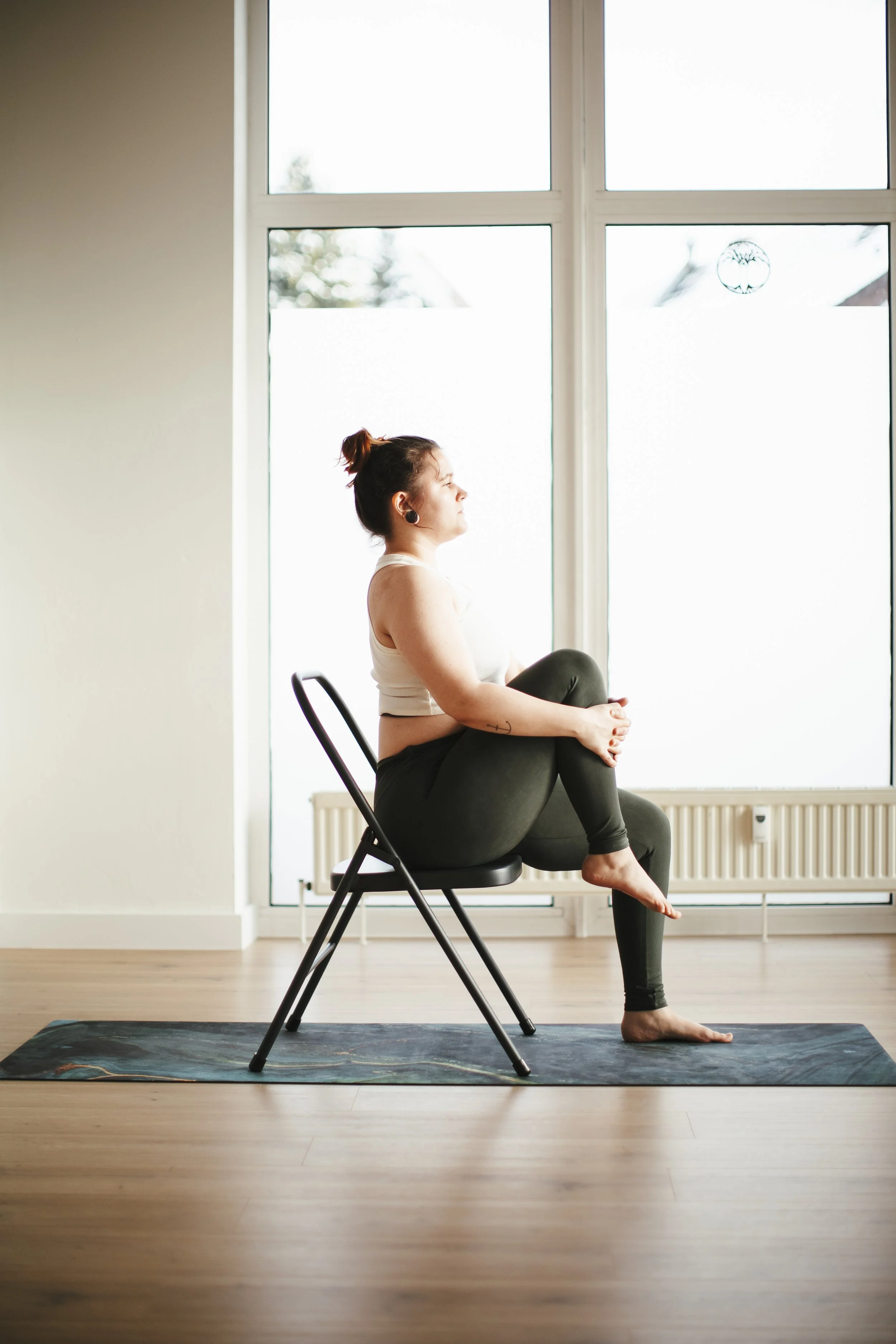 Der Stuhl ermöglicht Dir, eine neue Dimension des Yogas zu erleben. Anstatt das Gewicht des Körpers auf Handgelenken und Knien zu verteilen, stehst und sitzt Du in diesem Kurs. So schonst Du Deine Gelenke, stärkst aber dank fokussierter Übungen Deinen vollständigen Bewegungsapparat.